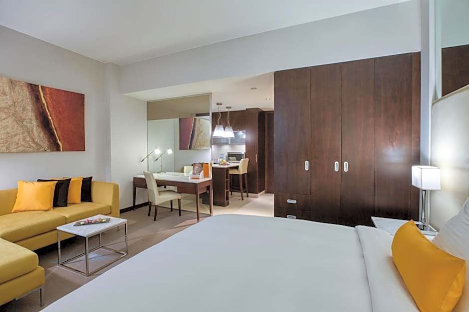 This spacious, air-conditioned suite offers a queen-sized bed, seating area with a flat-screen TV, a dining area, a kitchenette and a desk. The bathroom is fitted with a shower and a hairdryer. This room offers complimentary 2 bottles of water and tea/coffee sachets. This room accommodates 2 adults using existing bedding. An extra bed may be accommodated and is subject to charges and availability.